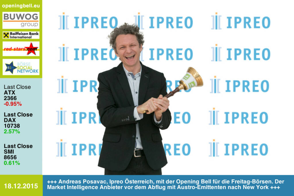 #openingbell am 18.12: Andreas Posavac, Ipreo Österreich, mit der Opening Bell für die Freitag-Börsen. Der Market Intelligence Anbieter vor dem Abflug mit Austro-Emittenten nach New York http://www.ipreo.com http://www.openingbell.eu (18.12.2015)