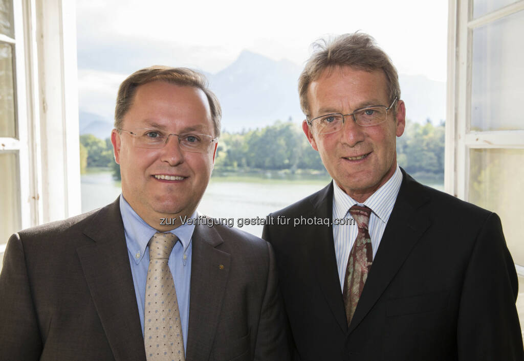 Wolfgang Reiger (Geschäftsführer IfM), Walter Schnitzhofer (Bankhaus Spängler) : Initiatoren des Lehrgangs "Management kompakt" für Unternehmensnachfolger und Führungskräfte von Familienunternehmen : Fotocredit: Andreas Kolarik, © Aussendung (25.02.2016)