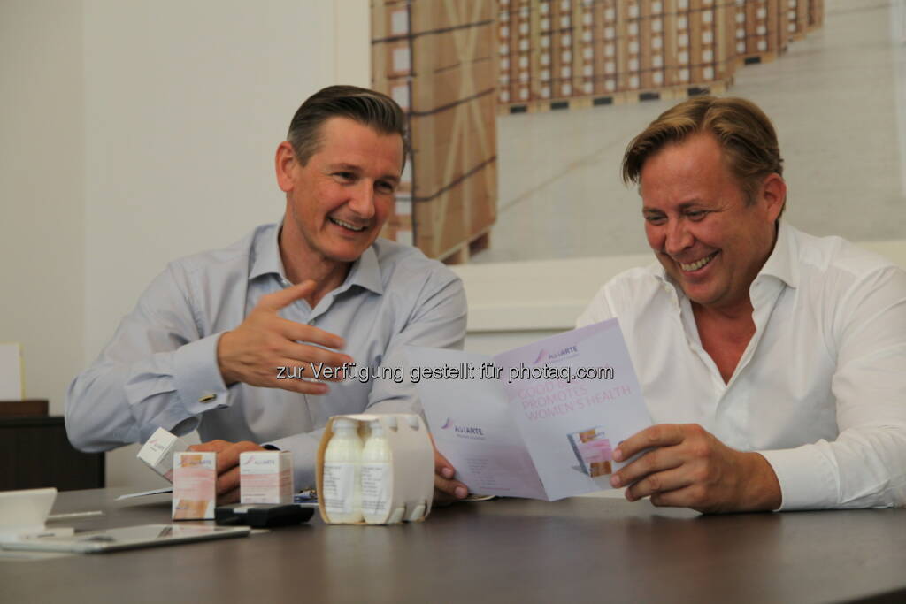 Alexander Schütz ( C-Quadrat Gründer & Gesellschafter von HS0 Health Care), Helmut Essl (Geschäftsführer & Miteigentümer von HSO Health Care GbmH) : Großer US-Vertriebskonzern für OTC-Produkte nimmt Austro-Probiotika von HSO Health Care ins Programm : Ab März großflächig in den USA vertrieben : Fotocopyright: HSO Health Care GmbH, © Aussender (19.01.2016)