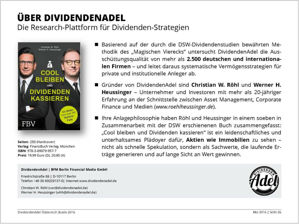Dividendenstudie Österreich 2016 Urheberrechtliche Hinweise, © BSN/Dividendenadel.de (06.05.2016)
