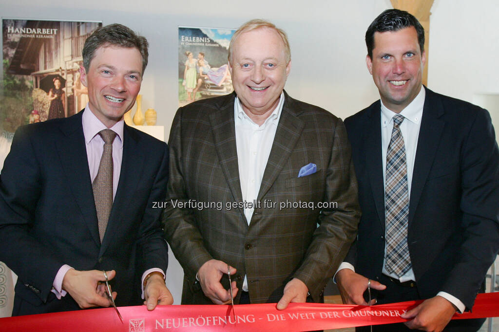 Jakob von Wolff (GF Gmundner Keramik), Alfons Schuhbeck (Starkoch), Mag. Stefan Krapf (Bürgermeister Gmunden) : Das neue Erlebnis-Highlight mitten im Salzkammergut - "Die Welt der Gmundner Keramik" : Fotocredit: Gmundner Keramik Manufaktur GmbH/APA-Fotoservice/Hautzinger, © Aussender (10.06.2016)