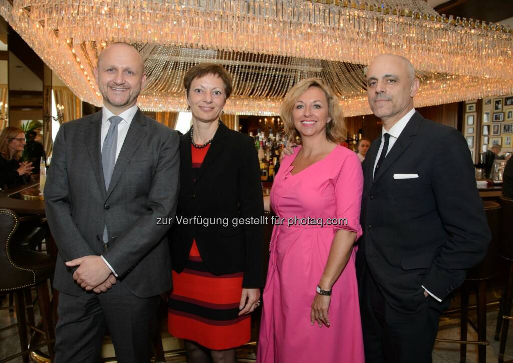 Norbert Kettner, Brigitte Trattner (InterContinental Wien), Daniela Enzi (Wertinvest), Gerald Matt : Im Rahmen der Veranstaltungsreihe „Gerald Matt spricht mit…“ : Wiener Tourismusdirektor Norbert Kettner spricht sich für den „Heumarkt neu“ aus : Fotocredit: Wertinvest Hotelbetriebs GmbH / Foto: RGE-Media, © Aussender (22.06.2016)