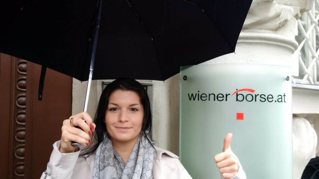 Regenschirm: Alexandra Rosinger vor der Wiener Börse (c) Rosinger (27.06.2016)