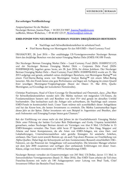 Neuberger Berman: Nachfrage nach Schwellenländeranleihen ist anhaltend hoch, Seite 1/4, komplettes Dokument unter http://boerse-social.com/static/uploads/file_1283_neube... (28.06.2016)
