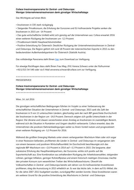 Coface Insolvenzpanorama für Zentral- und Osteuropa, Seite 1/3, komplettes Dokument unter http://boerse-social.com/static/uploads/file_1409_cofac... (14.07.2016)