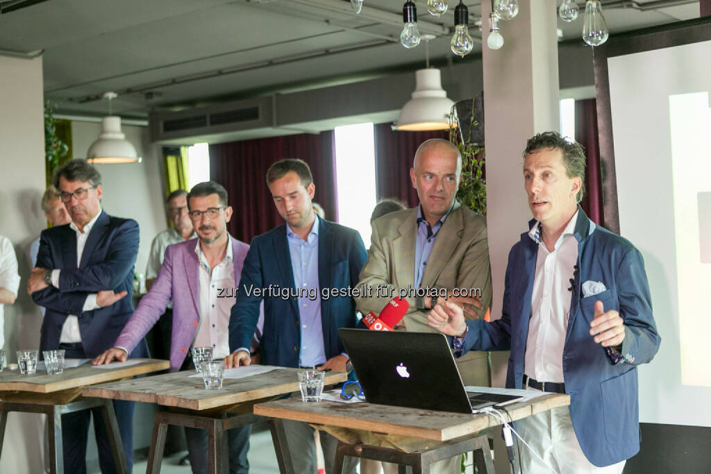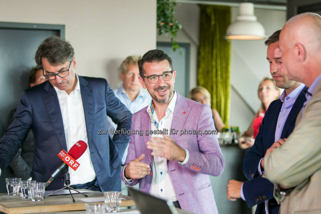 Stefan Schnöll (Generalsekretär Außenminister Sebastian Kurz), Philip Rusch (Founder & Lead Fotographer 361 Focus GmbH), Ulrike Mülleder (COO 361 Focus GmbH), Stefan Pierer (CEO KTM Industries), Christian Drastil, Roman Sindelar (Managing Partner/COO PKP BBD Werbeagentur), © Martina Draper (27.07.2016)