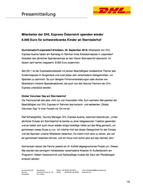 DHL Express Österreich Mitarbeiter: Spende für Sterntalerhof , Seite 1/2, komplettes Dokument unter http://boerse-social.com/static/uploads/file_1862_dhl_e... (30.09.2016)