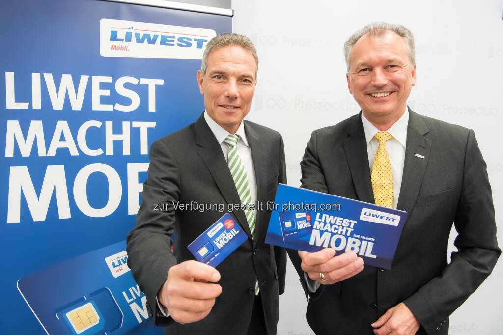 Michael Krammer (ventocom-GF), Günther Singer (Liwest Kabelmedien-GF) : Liwest und ventocom starten Mobilfunk-Angebot "Liwest Mobil“ : Fotocredit: LTK Telekom und Service GmbH/Rudolf Laresser, 4174 Niederwaldkirchen, © Aussender (20.10.2016)