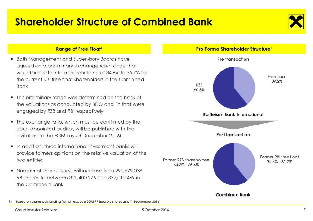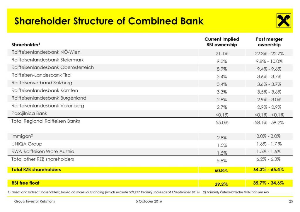 RBI - Shareholder Structure of Combined Bank (11.10.2016)