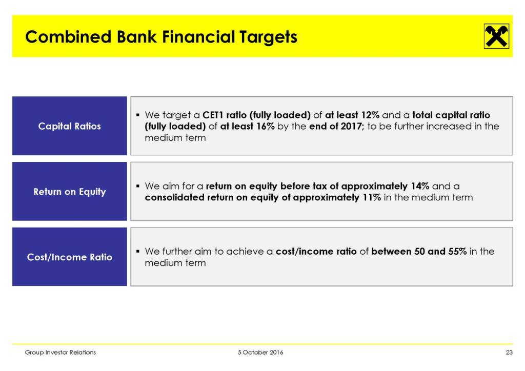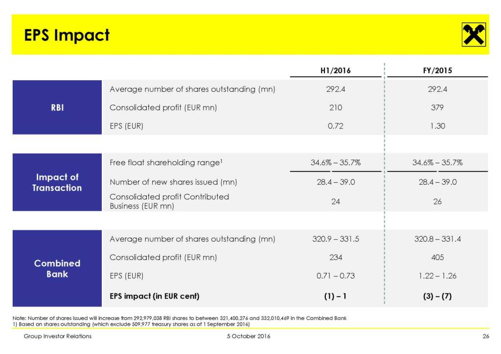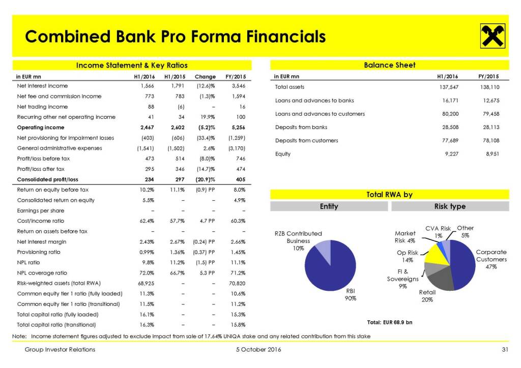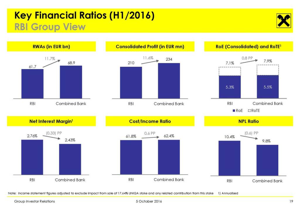 RBI - Key Financials of Combined Bank (H1/2016) (11.10.2016)