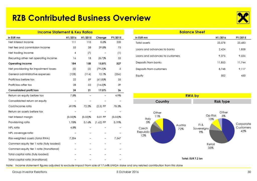 RBI - RZB Contributed Business – Key Financials (11.10.2016)
