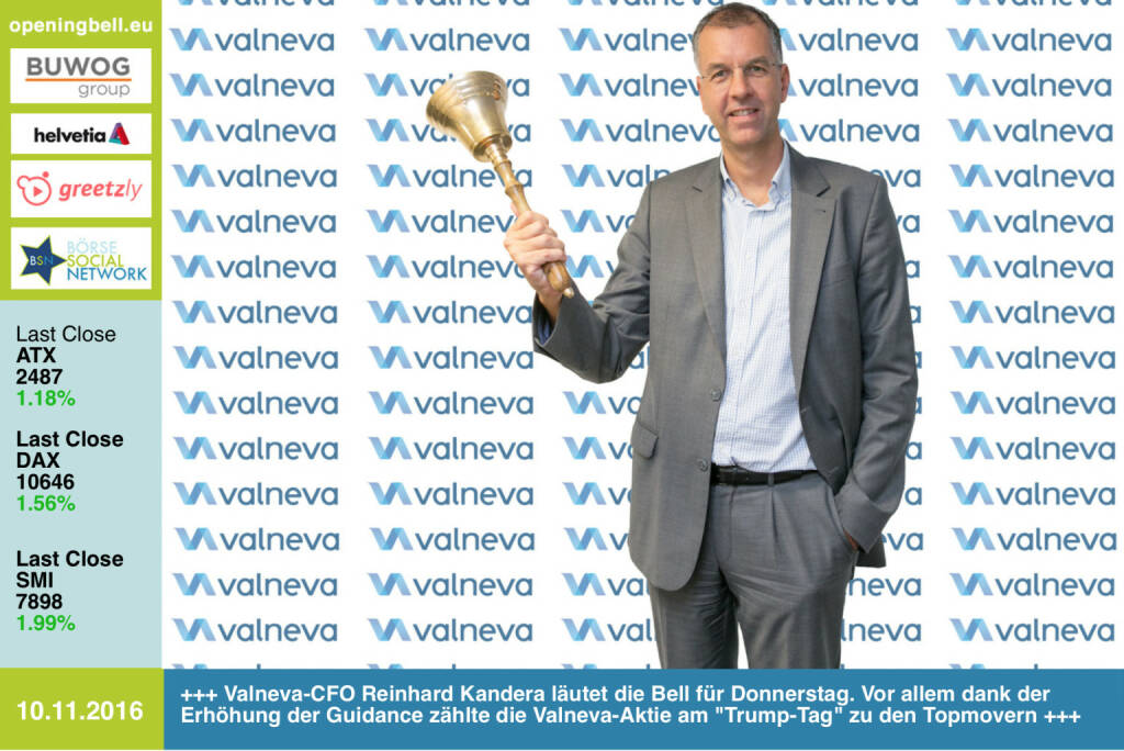 Einigung auf Valneva für die Opening Bell heute und warten auf das Läuten von CFO Reinhard Kandera (10.11.2016)