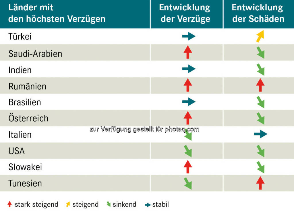 Top 10 Verzüge – Exportländer im Vergleich - Acredia Versicherung AG: Exportländer im Vergleich – wo die Zahlung am häufigsten ausbleibt (Fotocredit: Acredia Versicherung AG), © Aussender (12.04.2017)