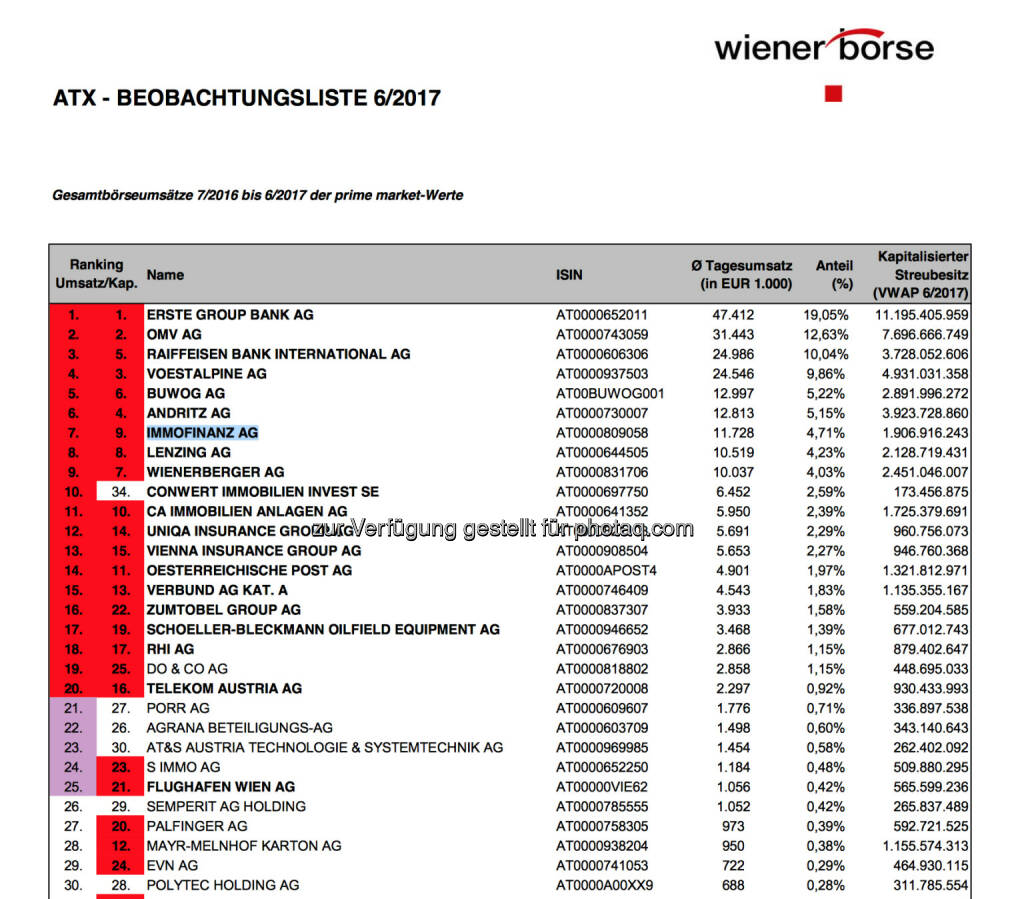 ATX-Beobachtungsliste 6/2017 (c) Wiener Börse, © Aussender (05.07.2017)