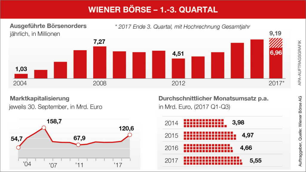 Infografik Aktivitäten an der Wiener Börse im Q3, Quelle: APA-Auftragsgrafik, Auftraggeber Wiener Börse, © Aussender (05.10.2017)