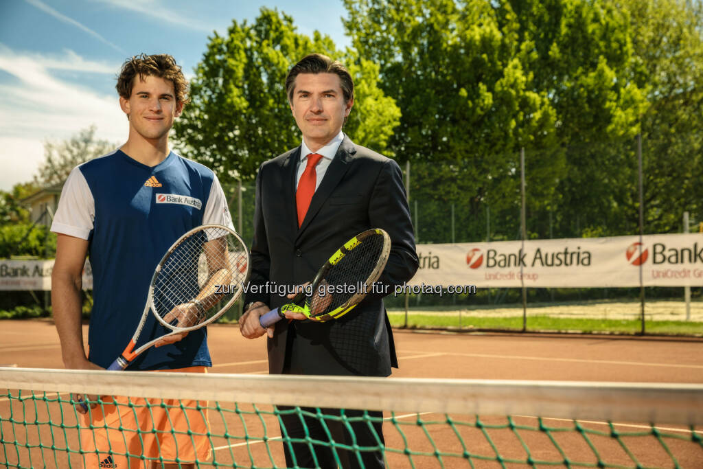 Dominic Thiem, mit 23 Jahren Österreichs Nummer eins und Shooting-Star der internationalen Tennisszene, wurde heute am Wiener Kaiserwasser als neuer Markenbotschafter der UniCredit Bank Austria präsentiert. Hier im Bild mit Robert Zadrazil, Vorstandsvorsitzender der UniCredit Bank Austria (Fotocredit: UniCredit Bank Austria), © Aussendung (02.05.2017)
