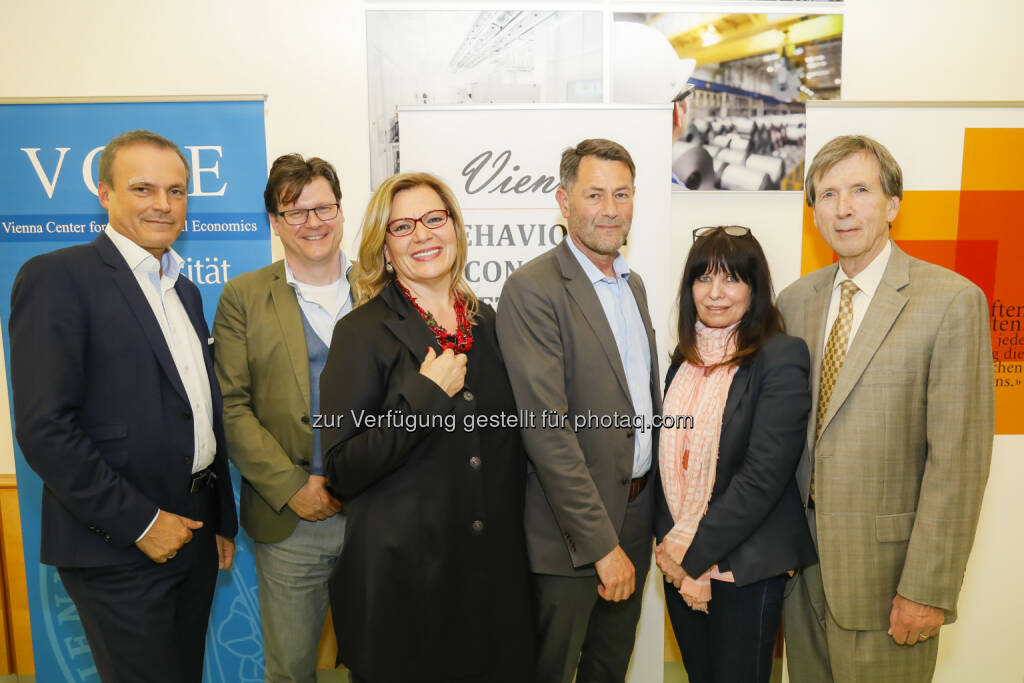 Eduard Müller (Bundesministerium für Finanzen), Jean-Robert Tyran (Universität Wien, VBEN), Corinna Fehr (VBEN), Erich Kirchler (Universität Wien), Erika Reinweber (Bundesministerium für Finanzen), Jim Alm (Tulane University, New Orleans) - Vienna Behavioral Economics Network (VBEN): Jim Alm: Wie man die Steuermoral der Bürger verbessert (Fotocredit: Vienna Behavioral Economics Network/APA-Fotoservice/Reither), © Aussender (17.05.2017)