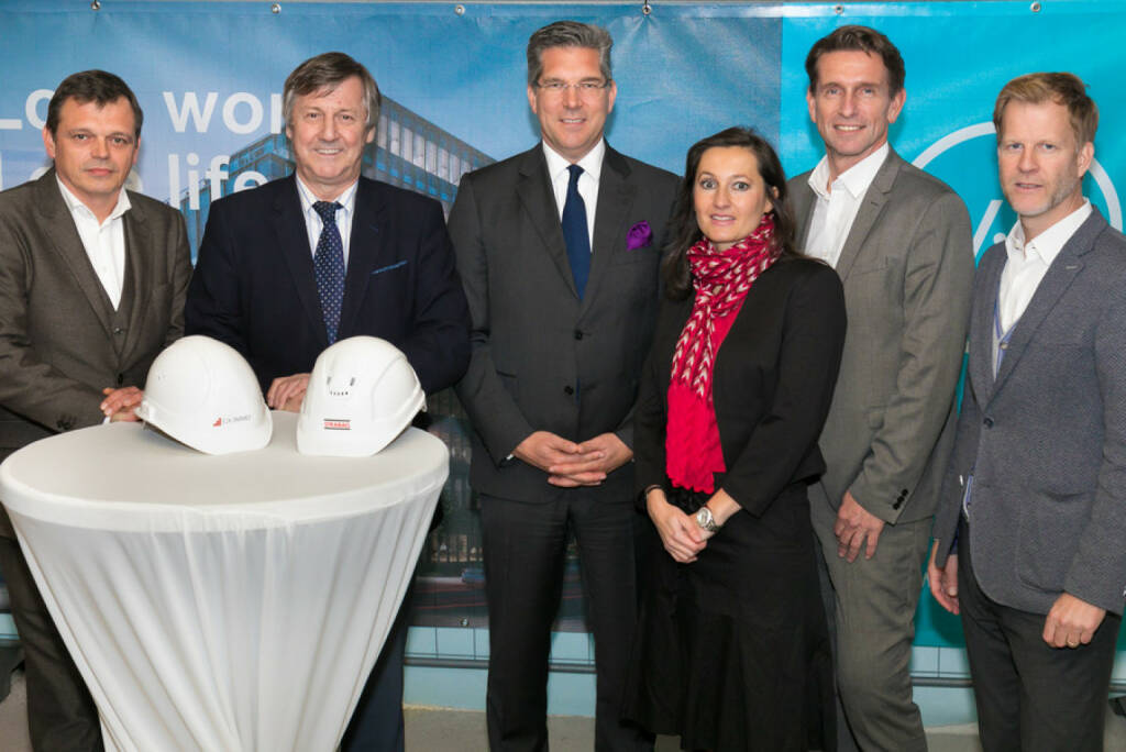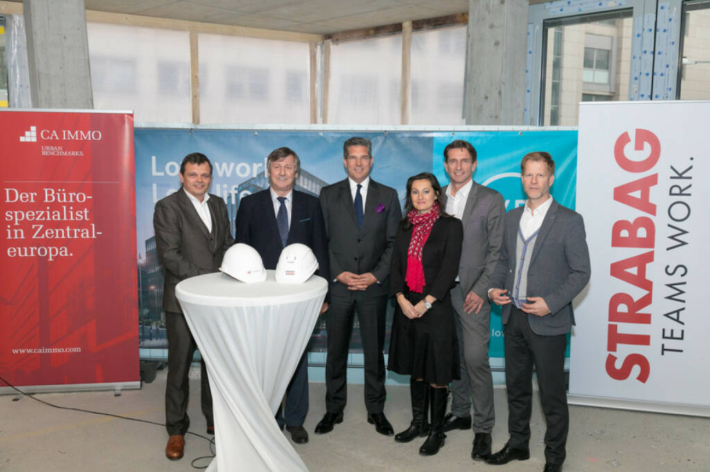 v.l.n.r.: Jan Höbart ( CA Immo), Erich Hohenberber (Bezirksvorsteher Wien Landstraße), Dr. Hans Volckens (Vorstand CA Immo), Karin Wöhrenschimmel (CA Immo), DI Frank Fercher (Bereichsleiter STRABAG), Christoph Gutknecht (CA Immo); Fotocredit: CA Immobilien Anlagen AG/APA-Fotoservice/Schedl (25.10.2017)