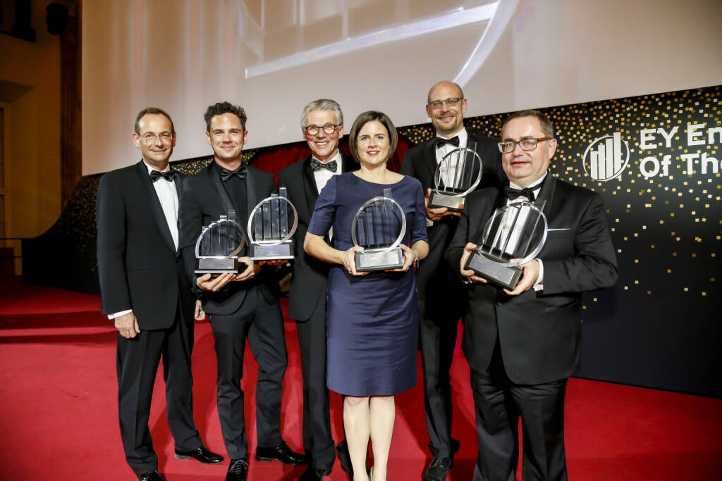 Die Prüfungs- und Beratungsorganisation EY vergab zum 13. Mal den EY Entrepreneur Of The Year AwardTM in Österreich: (v.l.n.r.): Erich Lehner, Managing Partner Markets EY Österreich; Philipp Maderthaner, Campaigning Bureau; Walter Emberger, Teach For Austria; Katharina List-Nagl, F/LIST; Johannes Homa, Lithoz; Werner Trenker, MED TRUST; Copyright: Point of View, © Aussendung (13.10.2018)