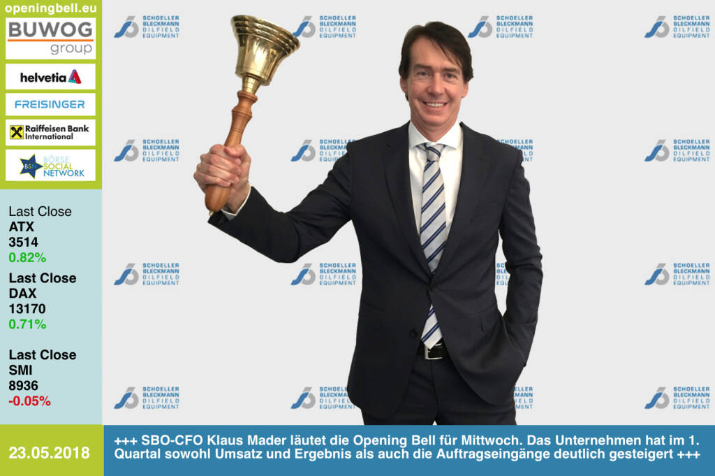 23.5.: SBO-CFO Klaus Mader läutet die Opening Bell für Mittwoch. Das Unternehmen hat im 1. Quartal sowohl Umsatz und Ergebnis als auch die Auftragseingänge deutlich gesteigert https://www.facebook.com/groups/GeldanlageNetwork/ #goboersewien (23.05.2018)