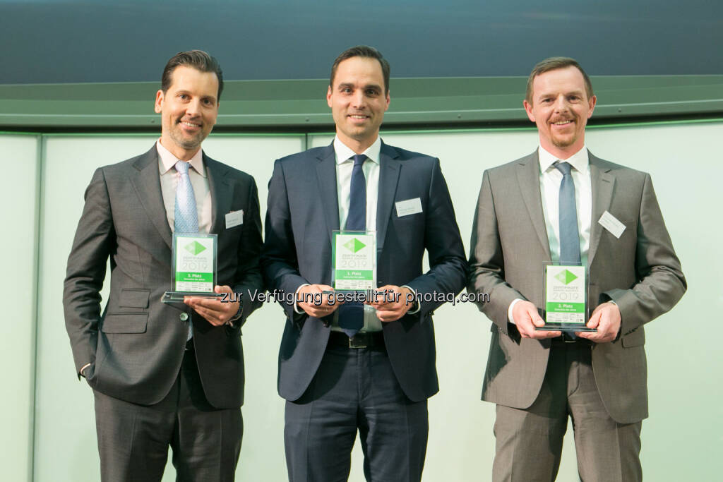 Zertifikate Award Austria 2019 - Innovation - André Albrecht (UniCredit onemarkets), Philipp Arnold (RCB), Christian-Hendrik Knappe ( Deutsche Bank X-markets), © Martina Draper (10.05.2019)