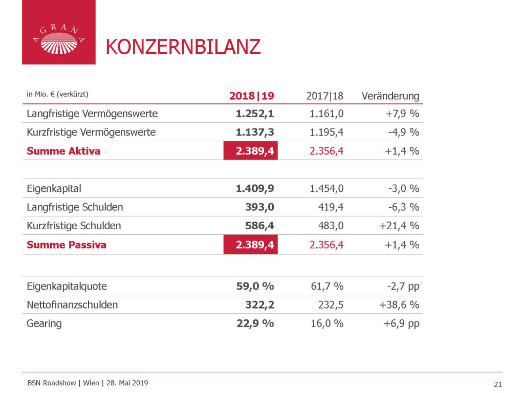 Agrana - GESCHÄFTSJAHR 2018|19 (29.05.2019)