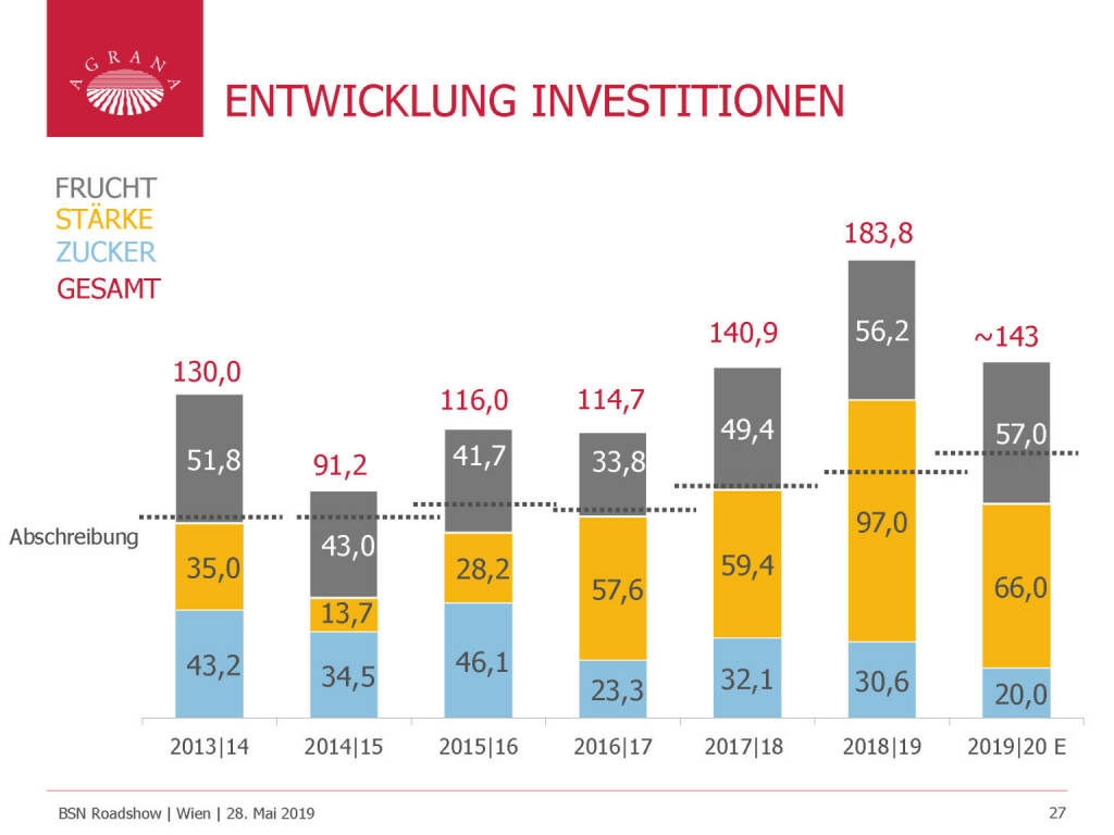 Agrana - ENTWICKLUNG INVESTITIONEN (29.05.2019)