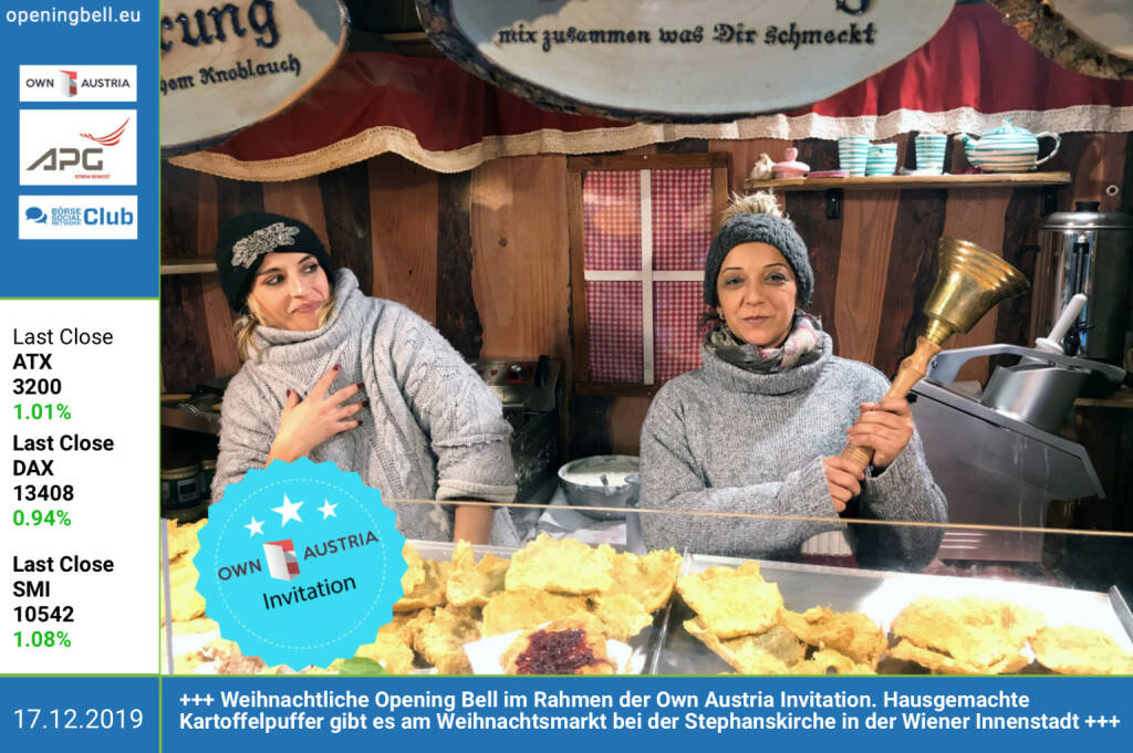 18.12.: .. die nächste weihnachtliche Opening Bell im Rahmen der Own Austria Invitation. Wiener Schneekugeln gibt es am Weihnachtsmarkt bei der Stephanskirche in der Wiener Innenstadt (18.12.2019)