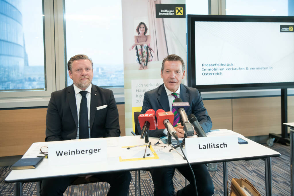 38% der erwachsenen ÖsterreicherInnen haben bereits ein- oder mehrmals eine Immobilie verkauft, vermietet oder verpachtet. Die Mehrzahl, nämlich 55% der Verkaufs- bzw. Vermietungstransaktionen erfolgte laut Umfrage von Privat an Privat, aber schon 45% der Abgeber beauftragen einen Makler.Peter Weinberger, Sprecher Raiffeisen Immobilien Österreich und Geschäftsführer Raiffeisen Immobilien NÖ/Wien/Burgenland und Mag. Nikolaus Lallitsch, Sprecher Raiffeisen Immobilien Österreich und Geschäftsführer Raiffeisen Immobilien Steiermark. Fotocredit:RIV Ges.m.b.H./APA-Fotoservice/Hörmandinger, © Aussender (06.08.2019)