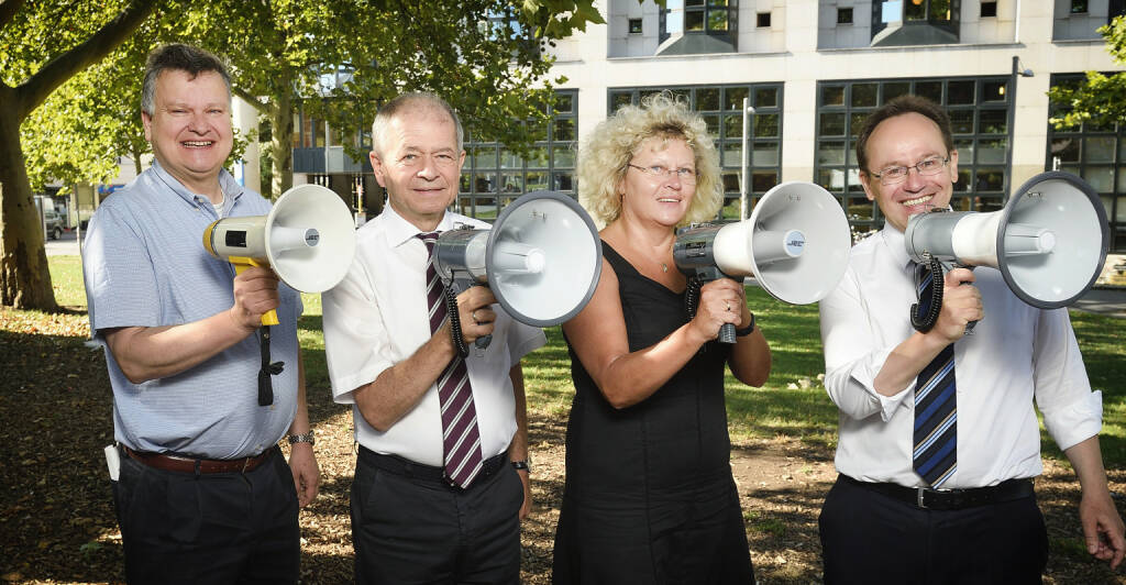 In einem gemeinsamen Pressegespräch stellten am Vormittag Thomas Henzinger vom Institute of Science and Technology Austria, Antonio Loprieno vom Österreichischen Wissenschaftsrat, Sabine Seidler von der Österreichischen Universitätenkonferenz sowie Klement Tockner vom Wissenschaftsfonds FWF fünf forschungspolitische Empfehlungen an die künftige Bundesregierung vor. Sie sollen den Wissenschafts- und Wirtschaftsstandort im Hinblick auf Innovationskraft und Wohlstand langfristig sichern sowie sicherstellen, das einmalige Potenzial an wissenschaftlichen Talenten nicht zu verschenken. Credit: ISTA / Johannes Zinner, © Aussender (19.08.2019)