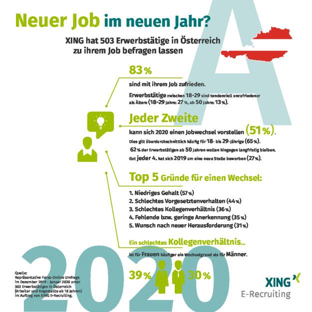ältere Arbeitnehmer sind zufriedener als jüngere. Sehr unzufrieden sind übrigens nur 2% der österreichischen Arbeitnehmer. Credit: New Work, © Aussender (29.01.2020)