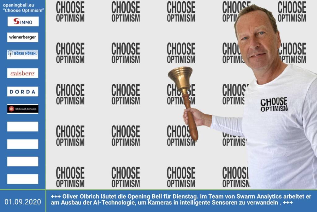 8.10.: Oliver Olschewski läutet die Opening Bell für Donnerstag, Long Distance Style (vorher/nachher unter https://photaq.com//page/index/3781). Der GF der Offerista Group Austria (wogibtswas.at) präsentierte zuletzt eine (positive) Studie zum Kaufverhalten in Österreich http://wogibtswas.at . Mehr Choose Optimism: https://boerse-social.com/category/choose_optimism https://www.facebook.com/chooseoptimism/ (08.10.2020)