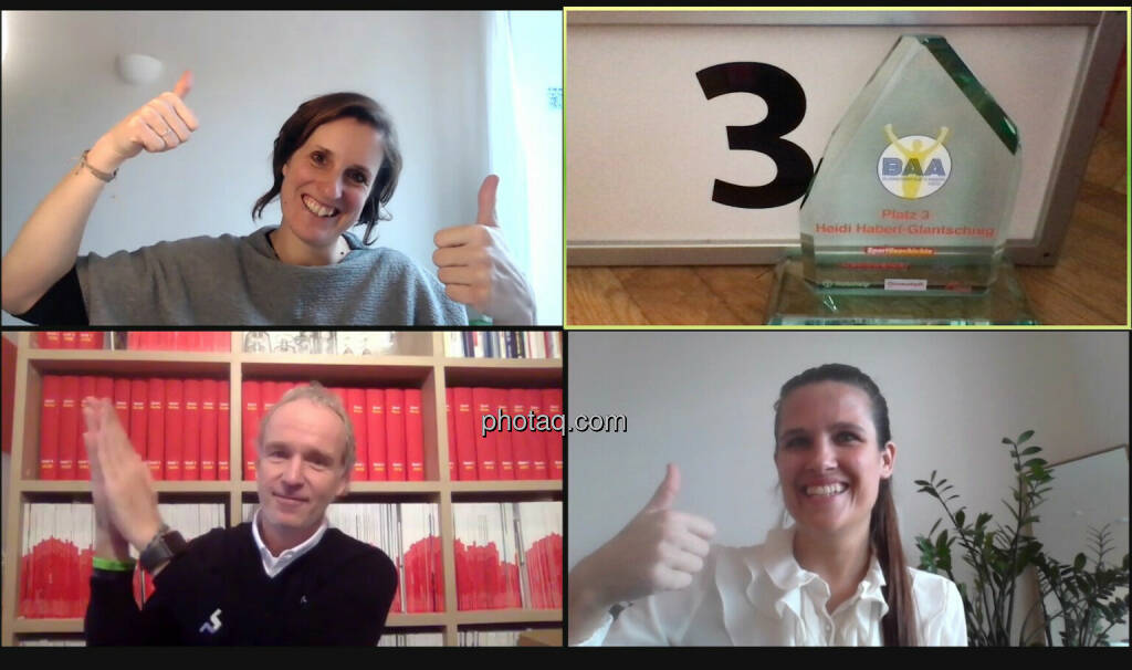 Platz 3: Heidi Haberl-Glantschnig (links oben) und Bernadette Frech (re. unten) vom Preissponsor Instahelp. Christian Drastil (BSN, Sportwoche/sportgeschichte.at, links unten) (17.02.2021)