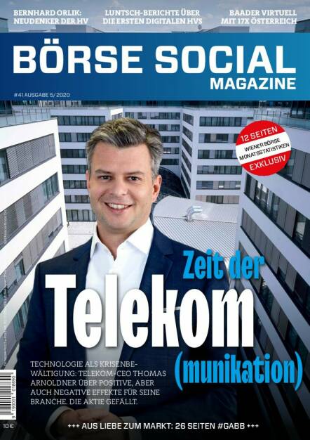 Magazine #41 - Mai 2020: Thomas Arnoldner, CEO der Telekom Austria, ist gerade in der Corona-Krise ein wichtiger Infrastruktur-Player für das tägliche Leben. Die Aktie auf dem Sprung zum Stay-at-Home-Titel? (19.02.2021)