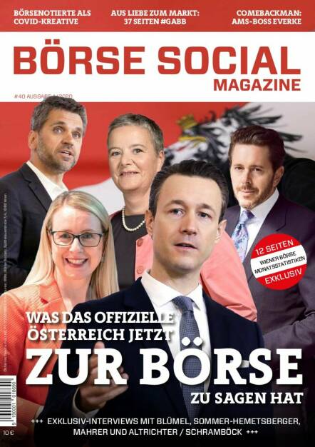 Magazine #40 - April 2020: Nach großen Ankündigungen bzgl. Entlastungen für Wertpapiersparer kam Corona. Wir wollen den Finanzminister und das offizielle Österreich trotzdem beim Wort nehmen. Tut mal was für die Börse und damit für den Standort, Gernot Blümel, Margarete Schramböck & Co. (19.02.2021)