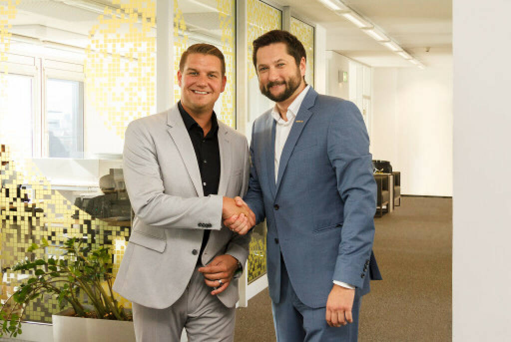 Cleen Energy und techbold verbinden Kryptomining mit Nachhaltigkeitskonzept; im Bild: Damian Izdebski (re, techbold) und Lukas Scherzenlehner (Cleen Energy), Credit: techbold, © Aussendung (17.09.2021)