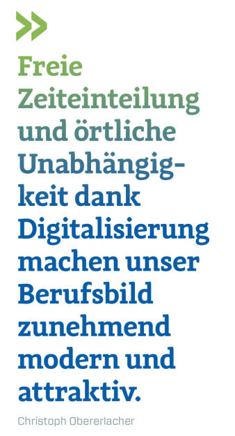 Freie Zeiteinteilung und örtliche Unabhängig-keit dank Digitalisierung machen unser Berufsbild zunehmend modern und attraktiv.