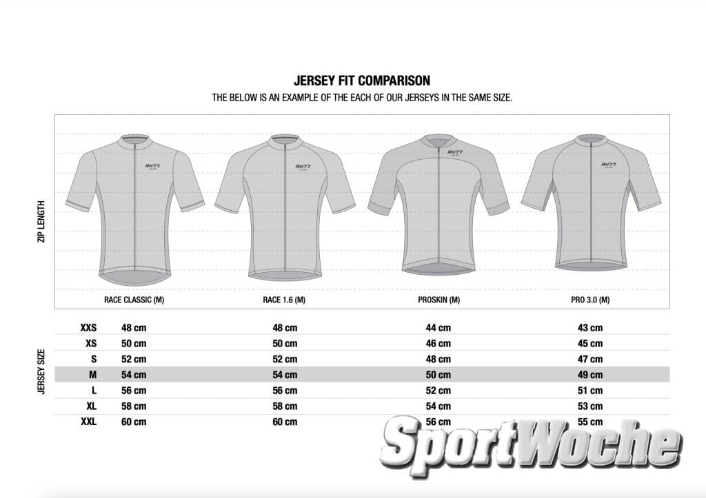 RH77 Katalog für Radsportbekleidung : Jersey Fit Comparision (20.10.2022)