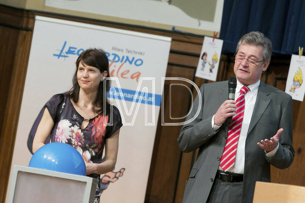 Lothar Roitner (Geschäftsführer FEEI - Fachverband für Elektro und Elektronikindustrie und Obmann der Fachhochschule Technikum Wien), Andreas Heindl (GF/Eigentümer der Konfiserie Hendl), Gabriele Zuna-Kratky (Direktorin des TMW), Johannes Höhrhan (GF der Industriellenvereinigung Wien), Erich Huber (WK Wien), Katharina Sigl (Festo), Robert Steiner und die Sieger (Platz 1-3) des Leonardino-Contests, © Martina Draper für Festo (23.04.2013)