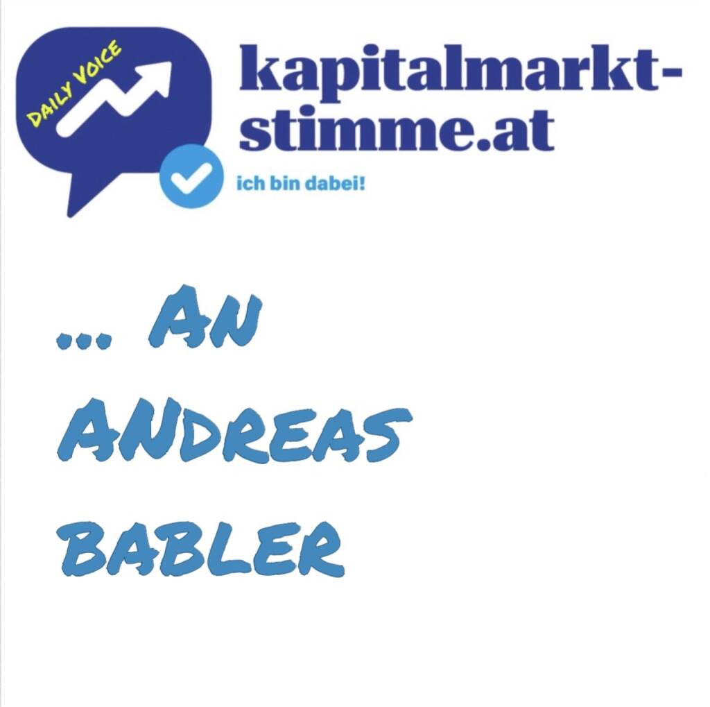 Episode 31/365 der kapitalmarkt-stimme.at daily voice auf audio-cd.at. Ich hatte mich in dieser Serie bereits an Karl Nehammer und Herbert Kickl gewandt. Heute an Andreas Babler und Anlass ist ein Tweet über Semperit-Erinnerungen, die ihn geprägt hätten. Mich haben Konsum-Erinnerungen geprägt und wir Privatpersonen, die an der Börse selbst vorsorgen (nicht spekulieren) entlasten den Staat und zahlen sogar doppelt ins System ein über die KESt. Ich würde gerne mal podcasten mit Andreas Babler.