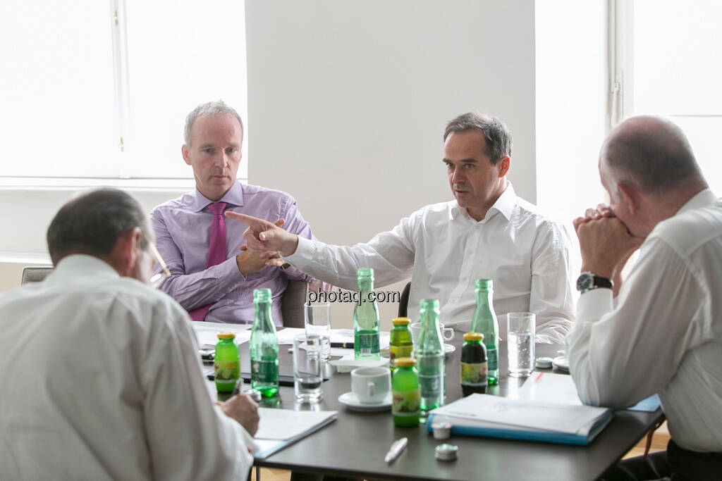 Wolfgang Nolz (Kapitalmarktbeauftragter, BMF), Michael Spiss (RCB), Heinrich Traumüller (Büro des Kapitalmarktbeauftragten, BMF), Andrea Pelinka-Kinz (RCB), © finanzmarktfoto.at/Martina Draper (06.08.2013)