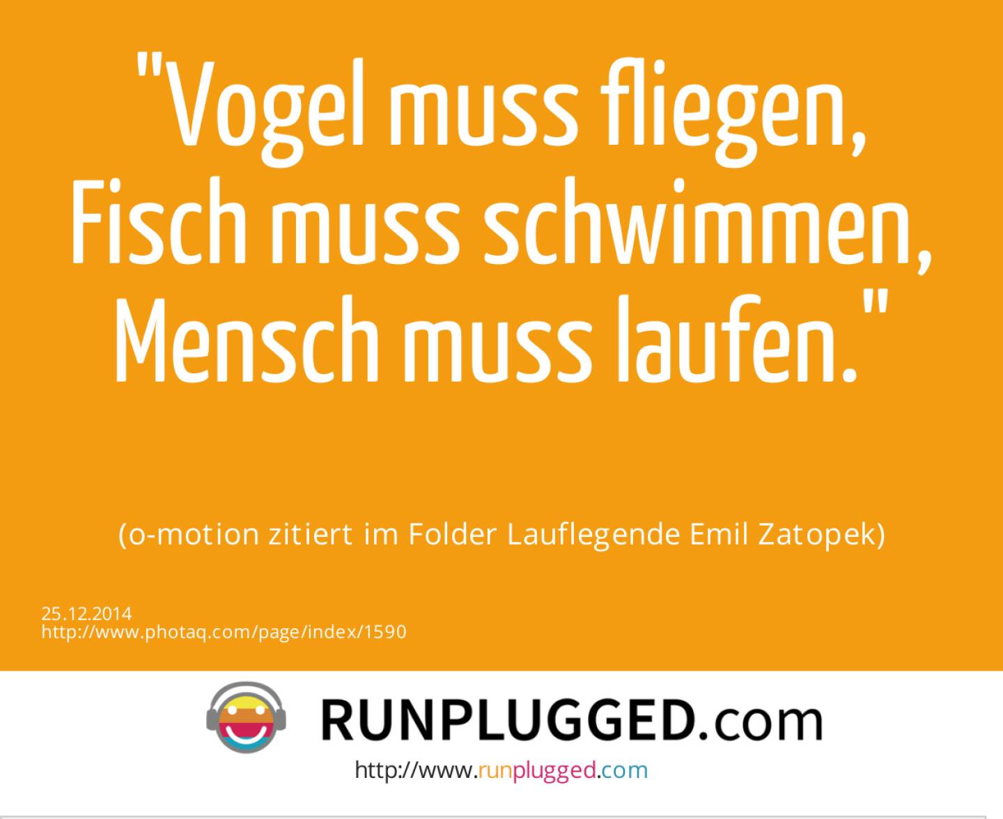 "Vogel muss fliegen, Fisch muss schwimmen, Mensch muss laufen. (o-motion zitiert im Folder Lauflegende Emil Zatopek)