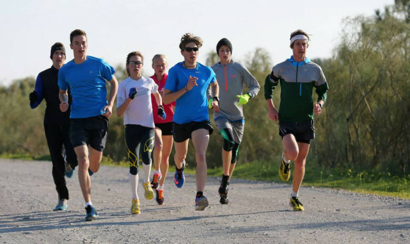 Andreas Vojta, Dominik Stadlmann, Nada Ina Pauer, Jennifer Wenth, Christoph Sander, Timon Theuer, Martin Mistelbauer. Nach 6 km, die Gruppe wird etwas kleiner...