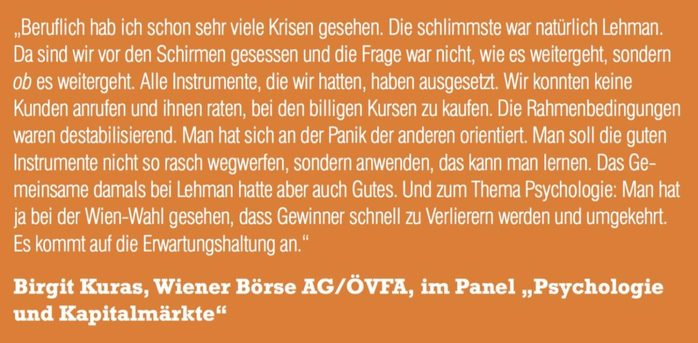 Birgit Kuras, Wiener Börse AG/ÖVFA, im Panel „Psychologie und Kapitalmärkte“