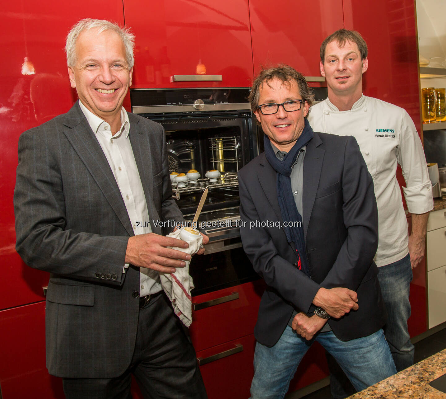 Erich Scheithauer (Geschäftsleiter Siemens), Ferdinand Hladik (kitchen12 Chef), Bernie Rieder (Spitzenkoch) : Kochen mit Lebensgefühl und Spitzenkoch Bernie Rieder : Siemens startet „cookingShow“ in Grazer Kochschule kitchen 12 : Fotocredit: BSH Hausgeräte Gesellschaft mbH/APA-Fotoservice/Angerer