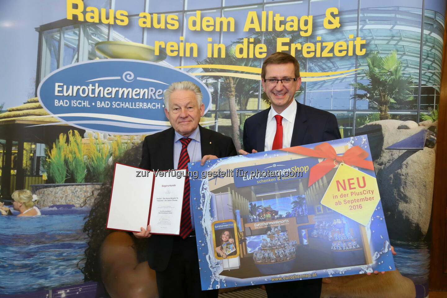 Josef Pühringer (LH OÖ), Markus Achleitner (Eurothermen-General) : Eurothermen setzen Trends mit touristischen Innovationen : Fotocredit: EurothermenResorts
