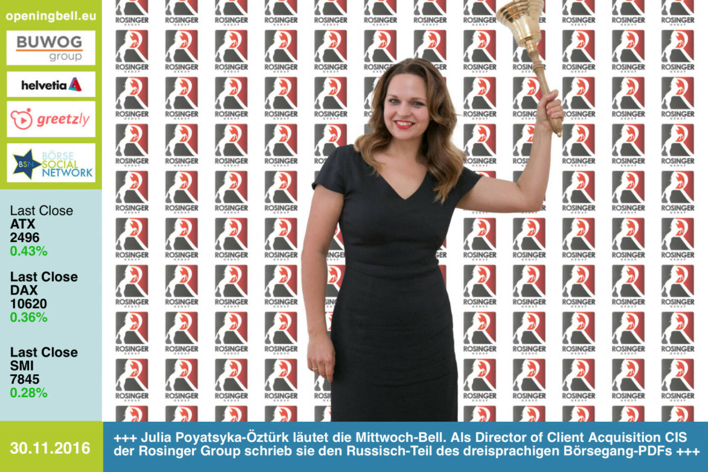 #openingbell am 30.11.: Julia Poyatsyka-Öztürk läutet die Opening Bell für Mittwoch. Als Director of Client Acquisition CIS der Rosinger Group schrieb sie den Russisch-Teil des dreisprachigen Börsegang-PDFs - zu finden unter