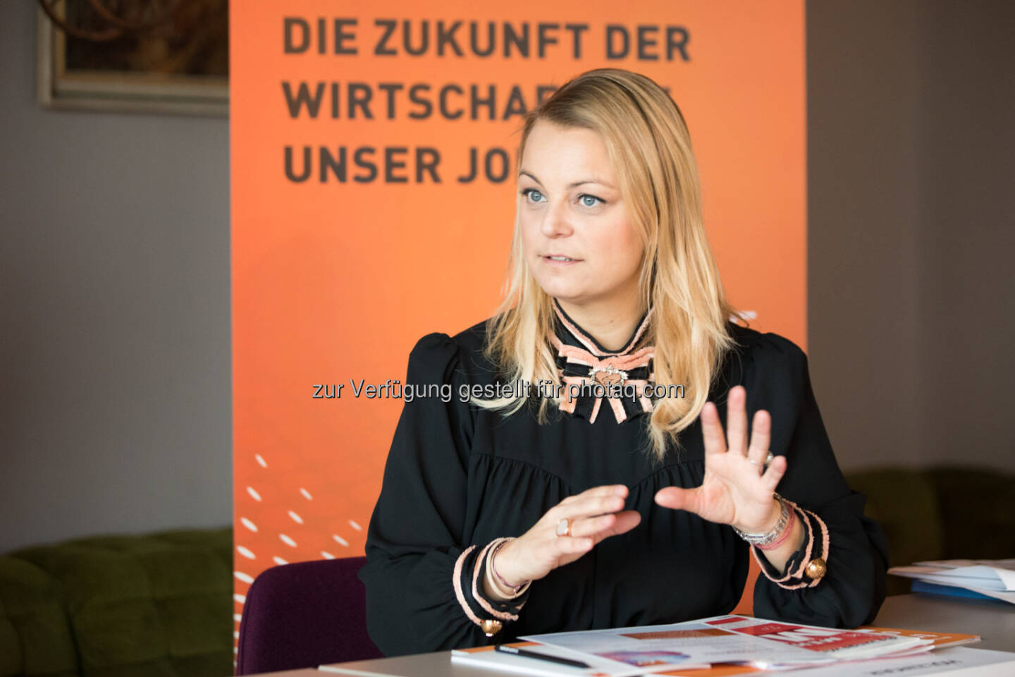 Österreichs Unternehmen wünschen sich von der nächsten Bundesregierung die Fortsetzung des Entlastungskurses. Dieses Bild der großen Unternehmensumfrage, die WKÖ-Präsident Harald Mahrer und WKÖ-Generalsekretär Karlheinz Kopf am Freitag vorgestellt haben, wird von einer Detail-Analyse der Jungen Wirtschaft (JW) verstärkt: Vor allem die Bereiche Steuern, Bildung und Klimaschutz sind ein Anliegen der österreichischen Jungunternehmerinnen und Jungunternehmer. im Bild: JW-Bundesvorsitzende Christiane Holzinger, Credit: www.annarauchenberger.com / Anna Rauchenberger
