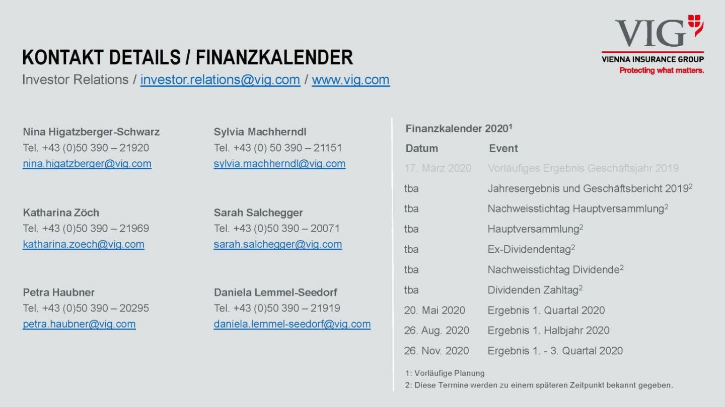 Vienna Insurance Group - Kontakt/Finanzkalender