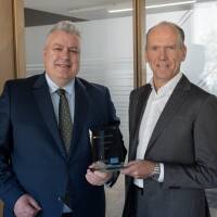 Award für LLB Aktien Österreich als Number One Ö-Aktienfonds: Christine Petzwinkler (BSM) übergibt an Fondsmanager Paul Pichler (LLB Invest)